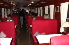 is made up of two carriages and one restaurant car. The two carriages, offering